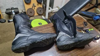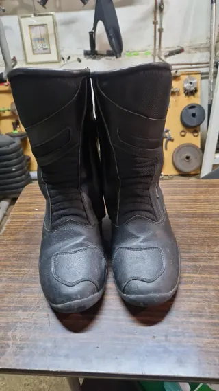 Botas de moto de cuero negro, diseñadas para ofrecer protección y comodidad. - Material exterior de cuero. - Cierre lateral. - Diseño de caña alta.