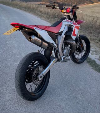 KTM EXC 450 Supermotard Modelo 2008 - Frenos Brembo - Línea entera akaprovic - Suspensiones para supermotard - Puños rápidos domino - Tijas regulables - Llanta delantera 16.5 - Neumático delantero al 90% - Arranque electrónico Muy cuidada, mantenimientos al día, moto de circuito, no matriculada, solo interesados gracias, no urge venta.