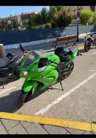 Moto deportiva Kawasaki Ninja 250r del año 2008 en color verde. Vendo o cambio por 125 que me interese , compre la moto para motivarme a sacarme el a2 y la tengo parada Estara disponible mientras no me saque el cerrado una vez lo tenga quitare el anuncio. -No tiene ITV -Necesita puesta a punto -Escape homologado MIVV de regalo