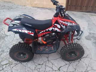 Se vende quad para niños de 49cc. Ideal para iniciarse en el mundo del motor. - Diseño deportivo en color rojo y negro. - Decoración con motivos de tiburón. - Ruedas todoterreno. - Asiento cómodo. - Parrilla trasera. Se vende en Málaga