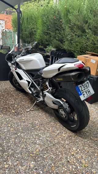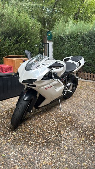 Esta motocicleta deportiva Ducati 848 en color blanco es un modelo icónico. Muy cuidada Muchos detalles en carbono, escapes akrapovic carbono, porta matriculas puig carbono 29.000km Podria ver cambio por coche o moto de mi interes, africa twin, gs, tmax, xadv #ducati, honda, bmw, trail, naked,ktm yamaha