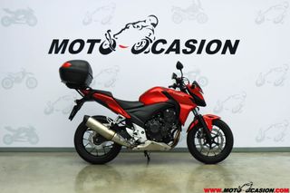 Moto Honda CB500F en color blanco y rojo. - Ideal para ciudad, muy manejable. - Año: 2015. - Incluye baúl trasero Shad. - Para carnet A2. - Muy cuidada. Todas las revisiones en taller Honda. - 53.000 km - Ruedas al 90%
