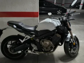 Moto Honda CB650F en buen estado. Diseño deportivo y ágil. - Color blanco con detalles rojos y azules. - Pequeño arañazo en tapa lateral (sin caída) - Filtro k&n alto flujo - Escape mivv gp carbono - Cúpula puig - Kit arrastre nuevo - Pastillas traseras nuevas - Revisión 48K - Radiador de la honda CBR 600 rr (mayor refrigeración) - ITV hasta 2027 Aporto facturas. La moto está impoluta, acepto cualquier prueba mecánica. NO NEGOCIABLE