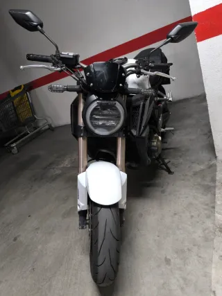 Honda CB 650R, versión 2023 Black Edition Garantía: dic. 2026 Servicio de mantenimiento: jun. 2027 Revisiones hechas en Honda (próx. revisión en dic. 2025) Limitable A2, NO LIMITADA Vendo por falta de uso, 5.346 km. en dos años Si la uso, actualizo km. y precio Neumáticos al 50%-60% (ver fotos) Componentes originales y de serie, salvo la cúpula incorporada Dos juegos de llaves. Entrego junto con la moto: - Funda para moto - Cadena y candado antirrobo - Limpiador y lubricante para cadena - Caballete de elevación de rueda trasera Precio NO NEGOCIABLE. Solo venta, NO CAMBIOS Acepto revisión mecánica, NO prueba circulación