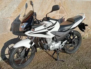 Se vende Honda CBF 125 en color blanco y negro de marzo del 2012. Moto con todos los mantenimientos al día y dos neumáticos nuevos. ITV hasta finales del 2026. La moto está todo de origen y hasta el día de hoy ni un solo problema. Tiene un mantenimiento muy económico ya que no dan problemas de ningún tipo. Es una moto muy ligera y excelente comportamiento, perfecta para iniciarse en las motos de marchas. Se puede ver y probar sin compromiso. - Carenado frontal negro. - Asiento negro. - Llantas de aleación negras.