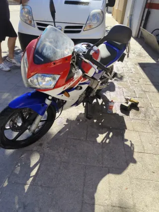 Se vende Honda CBR de 125cc en color rojo. - Moto deportiva. - Transmisión manual Itv y seguro hasta mayo 2026 Kit de embrage cambiado hace un mes ruedas nudvas todos los mamtenimientos al dia bateria de 3 meses de gel casco y proteccion chaqueta 60€ mas