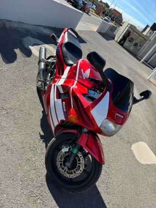 Moto Honda CBR1000 del año 1990. Presenta un diseño deportivo en colores rojo, blanco y azul. - Escape perforado. - Amortiguador trasero sin gas Bomba agua pierde Motor, bateria y neumaticos en buen estado. Oxido por ambiente de mar ITV OK, Documentacion en regla