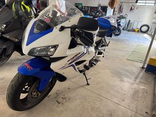Cbr 600rr 2004 hecha con cariño. - Culata HRC con arboles de levas - Escape artesanal - Cambio Quickswift - Dirección delantera invertida ( CBR 600rr 2009) - Amortiguador de dirección - Estriberas retrasadas - Asiento trasero monoplaza Tiene las revisiones al día, la última fue completa con reglaje de valvulas específico para la culata, cadena de distribución sustituida por una reforzada de mejor calidad, bujías, anticongelante y aceite y filtros. Neumáticos mitas nuevos. Rodamientos de dirección cambiados y recién hecho mantenimiento de las barras de suspensión. La moto tiene actualmente 74.000 km. Va como un reloj.