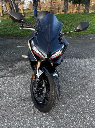 Moto deportiva Honda CBR 650r limitada para A2. - Garantía oficial, revisiones oficiales - 4100km - Año diciembre 2022 - Escape akrapovic, se entrega original - Porta matrículas corto, se entrega original - Kit deportivo con colín, pantalla, protector deposito y kit de cambios rápido - Precio no negociable