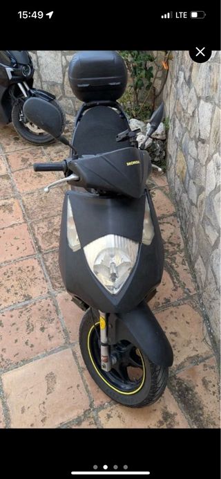 Moto scooter Honda en color negro. Ideal para desplazamientos urbanos. Ruedas nuevas enciende de y esta perfecta, los plásticos están quemados y un poco rayados, ya la compre asi. Motivo de la venta: la compramos para que un persona aprendiera a andar en ella y nunca aprendió, no le hemos echo ni dos quilometros en un año, quiero salir de ella por que solo ocupa espacio.
