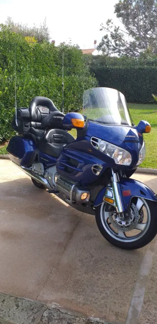 Moto Honda Goldwing 1800GL de 2002 con 90.000 km. IMPECABLE Es una moto mítica, conocida por su comodidad inigualable y su motor bóxer de 6 cilindros indestructible. La moto está en un estado general excelente para sus años. Mecánica: Revisiones al día. Siempre guardada en garaje cerrado. Extras y equipamiento: Este modelo viene cargado de serie: Marcha atrás (imprescindible en esta moto). Radio/Audio con altavoces. Control de crucero. Maletas y top case integrados con gran capacidad de carga.
