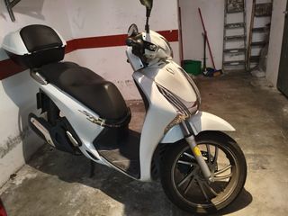 Scooter Honda SH125 en color blanco y plata, con transmisión automática. La moto tiene 42.000 km, siempre ha estado muy cuidada y siempre ha dormido en garaje. - Neumático trasero cambiado hace 2000 km. - Revisión general al día - Por desgaste, en enero de este mismo año se han cambiado el retén del embrague, los rodamientos, la junta y los rodamientos de la rueda trasera. - Maletero trasero integrado para mayor capacidad de almacenamiento. Original de Honda.