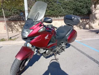 Moto Honda Deauville 650 en color negro. Ideal para rutas. - Cúpula alta para mayor protección. - Maletas laterales integradas. - Baúl trasero para equipaje adicional. - Ruedas al 90% tienen unos 2000km - Limitada para el carnet A2 - Mantenimiento hecho hace 2000km - ITV pasada hasta 2027 - Asiento de Gel (Maverik) - Precio negociable