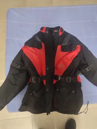 Chaqueta de moto versátil para cualquier estación. - Diseño en color negro y rojo. - Estilo touring para mayor comodidad en ruta. Diseñada para ofrecer protección y comodidad en tus rutas. - Protecciones integradas en codos, hombros y espalda. El forro de un bolsillo está descosido. Con forro de invierno. Está muy usada pero es funcional y perfecta para el A2/A de ahí su precio pone talla m pero corresponde a talla L/LX Dainese alpinestar bmw yamaha honda