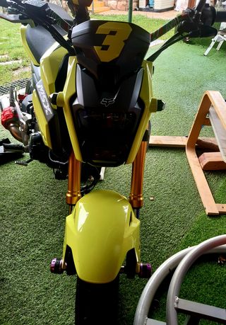 Honda MSX 125 del año 2023 Honda GROM 18.000 km Segundo propietario Mantenimientos en casa ofical La vendo porque tengo demasiadas motos... Ideal para camper autocaravana, aprender a andar o incluso si sabes (es demasiado divertida) solo 100kg. Tiene algún que otro defecto estético (ver fotos) me la tiro el viento. Rueda delantera Diablo Rosso El portabultos se vende a parte (50 euros)