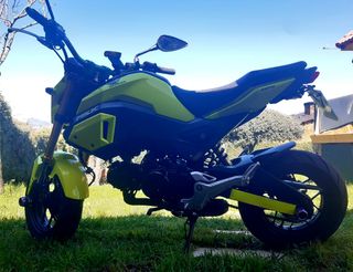 4500 kms con mantenimientos al día Muy bien cuidada. Siempre en garaje ITV recién pasada Se entrega: - Soporte de maleta y maleta - Escape imitación Akrapovic - Espejos pequeños - Portamatriculas corto - (Ultimas imágenes) Tiene batería nueva y cambio de aceite recién hecho (demostrable) Ruedas buenas (Mitas) al 80% Moto muy ligera, manejable, cómoda y de muy bajo consumo NO ACEPTO CAMBIO y esta en uso hasta que se venda Honda Grom, monkey, scooter.