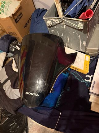 Carenado de moto Honda en color negro. - Logo de Honda visible. - Superficie brillante.