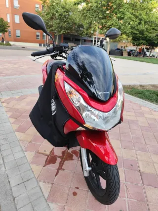 Moto Honda PCX 125 en color rojo. 20122 - Diseño moderno y deportivo. - Parabrisas oscuro. - Espejos retrovisores negros. Año 2012 Tiene un raspón en lateral Incluido en el precio puños calefactables,pitón de puño y manta. ITV recién pasada