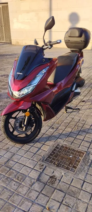 Scooter Honda PCX 125 en color rojo. Llave inteligente y con alarma antirrobo. Capacidad para 2 cascos. La moto justo ahora a hecho los 4 años y se le ha pasado la primera ITV.Tiene unos 34500 km. Y no hay que hacerle nada. Consumo ridículo, 2 litros a los 100. Es de mi mujer, pero se ha comprado coche y no la va a gastar más. - Baúl trasero incluido. - Parabrisas alto. No contesto a mareantes. Mejor ver en persona,está muy cuidada.