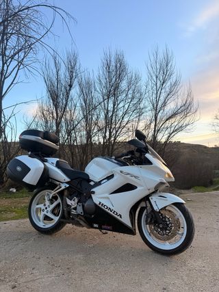 Honda VFR800 del año 2005 con 50.000 km. La moto está en buen estado y lista para rodar. - Ruedas nuevas. - Cúpula deportiva. - pastillas del nuevas menos de 1000km s22 - filtro de aire limpiable de alto flujo de aire - se entrega con las 3 maletas las laterales son originales con el logo de vfr