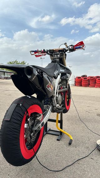 Moto Honda CRF 450 Supermotard en excelentes condiciones. Lista para rodar. -Es del 2008 -Pinza Brembo serie Oro. -Llanta delantera Twenty. -Pastillas delanteras recien cambiadas por unas Brembo. -Pastillas traseras nuevas. -Neumatico delantero nuevo a estrenar -Neumatico trasero al 90% -Puño rapido domino -Termostato del agua digital. -Bomba de freno Brembo. -Disco delantero flotante Galfer. Para mas informacion por privado.