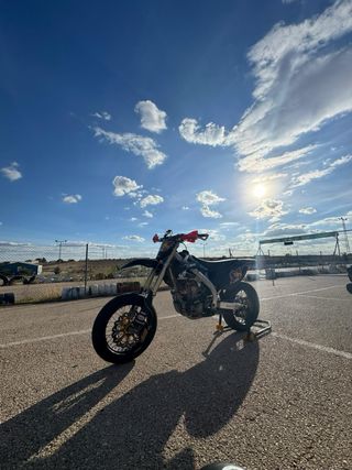 Moto Honda CRF 450 Supermotard en excelentes condiciones. Lista para rodar. -Es del 2008 -Pinza Brembo serie Oro. -Llanta delantera Twenty. -Pastillas delanteras recien cambiadas por unas Brembo. -Pastillas traseras nuevas. -Neumatico delantero nuevo a estrenar -Neumatico trasero al 90% -Puño rapido domino -Termostato del agua digital. -Bomba de freno Brembo. -Disco delantero flotante Galfer. Para mas informacion por privado
