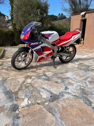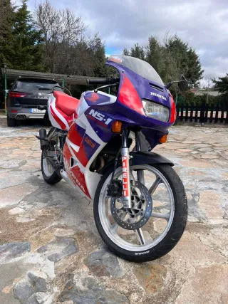 Moto deportiva Honda NS-1 con transmisión manual. - Diseño deportivo. - Colores llamativos en morado y rojo. Neumáticos en buen estado. - Ideal para coleccionistas o entusiastas. - En buen estádo en general algún desperfectos estéticos,se ve en las últimas fotos. -Sin ITV - con papeles,a nombre de un amigo,me la dejo para ponerla un poco al día. La moto se encuentra en un pueblo de Guadalajara.