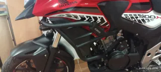 Moto Honda CB500X en color rojo, estilo trail. - Cilindrada: 500cc - Transmisión manual - Incluye maleta trasera
