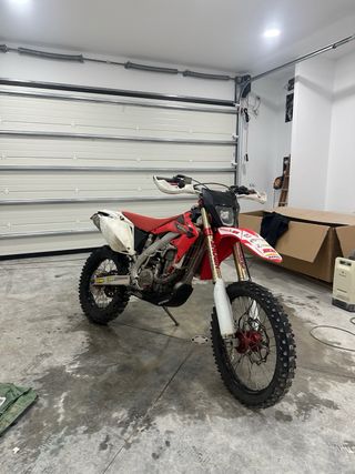 Moto Honda CRF 450x con muchos extras, estator recién puesto. (se cambia por otra moto) Moto en perteto estado bien cuidada y cargada de extras a capricho, tiene montado el kit 490cc hace pocas horas. Es 2005 Llantas con aros Excel bujes rojos reforzados mousse en las dos ruedas escape completo Akrapovic disco freno flotante tijas rojas Bud racing radiadores sobredimensionados con eletroventilador manetas reversibles cubremanetas cerrados cubrecarter grande asiento antideslizante Diamond Arranque electrico y algunas cositas mas Si vas a marear o a bajar el precio no te molestes en escribir