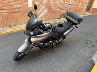 HONDA TRANSALP XL650V - 2007 A la venta moto trail en excelente estado, lista para cualquier aventura. Año: 2007 Kilómetros: 48.000 aprox. Cilindrada: 647cc Carburante: Gasolina ITV: Favorable Distintivo ambiental: B Extras incluidos: • Ruedas de tacos para máxima adherencia • Defensas para mayor protección • Topcase y maletas laterales, ideales para viajes • Luces exploradoras para mejor visibilidad • Pantalla alta para mayor confort en ruta Moto fiable, cómoda y perfecta tanto para ciudad como para escapadas off-road. Mantenimiento al día y en perfecto estado. Interesados, contactar por mensaje o llamada. No dejes pasar esta oportunidad.