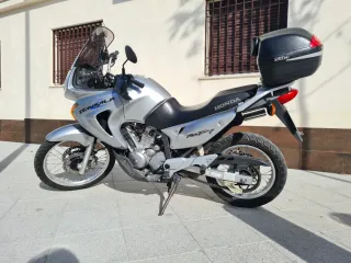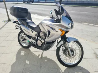 Moto Honda Transalp 650 en color plata. Ideal para uso diario, rutas y aventuras. Incluye maleta trasera para dos cascos Nada de campo Moto muy fiable y motor indestructible. De facil conducción. Datos principales: Año: 2004. Kilometraje: 58.000 km. ITV: Hasta Julio del 2027. Potencia: 53 CV (Perfecta para viajeros o uso diario). No pide apenas mantenimiento, se le ha ido haciendo lo que ha necesitado, lo ultimo este año bateria de litio y kit de arrastre. Aceite y filtros recién cambiados.