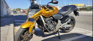 VENDO O CAMBIO espectacular moto Honda CB 600 F Hornet en color dorado. Está en muy buen estado general y lista para disfrutar. Motor inyección, cambio, frenos y ruedas en perfecto estado con tan solo 49000 kms REALES y DEMOSTRABLES. Sólo tiene 1 abolladura mínima en el depósito de que le caiga otra moto encima. Tiene topes anticaida y protector de depósito de avispa (Hornet). Incluyo casco como nuevo a juego con la avispa (Hornet). CAMBIO preferentemente por moto tipo trail (vstrom o similar) u otra de viaje que me interese. También por maxi scooter.