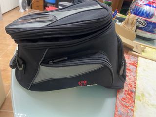 maleta para depósito de moto, 15L en perfecto estado anclaje ION con modelos de anclaje uno para honda y los otros dos creo que son para Ducati y BMW - Práctica y cómoda de usar. - Color negro y gris. - Cremallera funcional. - Asa de transporte.