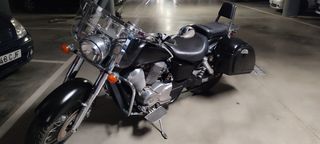 vendo moto honda shadow 750cc americam classic. perfectas condiciones muchos extras, pantalla, reposa pies, alforjas rígidas con luces de freno, escapes artesanales ( regalo originales para ITV ). Recién pintada en negra mate. 34350km del 2002. muy cuidada.