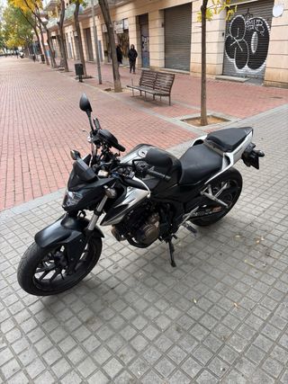 Vendo Honda CB500F del 2016 en muy buen estado mecánico. Moto fiable, divertida y muy económica. 🔧 Mantenimiento al día Batería recién cambiada, bujias recién cambiadas Revisión recién hecha Retenes de la suspensión nuevos Neumático trasero completamente nuevo 📊 Kilometraje: 52.000 km 🅿️ Siempre ha dormido en parking ⛽ Consumo real de unos 4 L/100 km, es un auténtico mechero. Escape no de serie montado actualmente. Incluyo el escape original de serie en perfecto estado. 🎨 Tiene alguna pequeña rallada del uso normal (ver fotos). Moto lista para usar, sin gastar dinero . Se puede ver y probar sin compromiso.