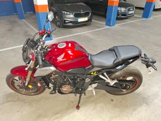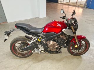 Honda CB 650 R Limitada para carnet A2. 12.900 kms. ITV en vigor. Año 2021. Todas las revisiones pasadas con Honda (demostrable). Recién pasada en Abril 2025. Siempre ha dormido en garaje. Portamatrículas corto (se entrega el original) y topes de motor. Está nueva, se le ha dado poco y adecuado uso. Incluye suscripción Honda Mapit. (Las fotos son de estos días, la moto está tal cual se ve)