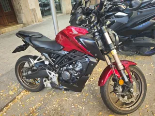 Vendo mi Honda CB125R, 15 CV y horquillas invertidas, Frenos ABS, Faros LED, Pantalla LCD. ITV en vigor. La moto va perfecta, 34 700 kms aprox hechos la mayoría por carretera por el uso diario. Kit de arrastre recién cambiado. Consumo real de 2.2L/100km. Perfecta para andar por la ciudad y carreteras, super ágil y ligera. Tiene algunos plásticos dañados por una caída. Es un daño puramente estético que no afecta para nada la estructura, al chasis ni a la seguridad en la conducción. Incluyo portamatricula original. (Única modificación) Precio algo NEGOCIABLE. La vendo x cambio sacarme el A2