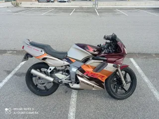Moto Honda NSR 125 de dos tiempos. Vendo por debajo de precio de mercado ya que tiene desperfectos por el paso de los años.Tiene una pequeña fisura en el chasis y la suspensión delantera hay que cambiar muelles o ponerle un tope más grande. Tienes solamente 17.000 km,está en buen estado quitando lo de la fisura y la suspensión. - Diseño deportivo. - Color burdeos y plateado con detalles naranjas. - Ruedas nuevas.