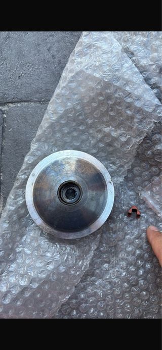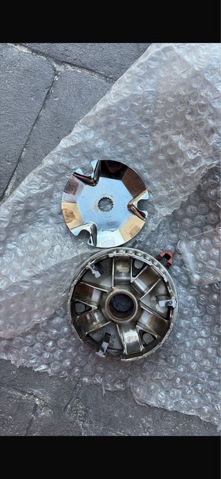 Componentes de variador Polini para moto. Piezas metálicas con acabado pulido. - Variador. - Tapa del variador.