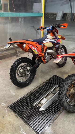 Moto KTM EXC 300 TPI de 2 tiempos, modelo 2023. - Cilindrada: 300cc. - Tecnología TPI (Inyección en Puerto de Transferencia). - Modelo de dos tiempos -con muy poco uso