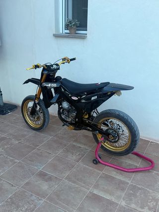 Esta Rieju SMX es una supermotard con detalles en negro y dorado. Esta echa a capricho no le falta detalle, el motor esta completamente nuevo y solo la he sacado una vez. Para mas info hablarme