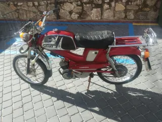 Preciosa moto clásica Derbi Variant, en estupendas condiciones. Ideal para amantes de las motos clásicas restauradas. - Diseño personalizado y único. - Llantas rojas. 74cc metrakit con culata de descompresor Rotor selectra Biela metrakit Carter trucados y arenados Tubo de escape svk Cajón de laminas lomat y caja laminas malossi Carburador 28 oko Embrague fijo italkit Muelle polea metrakit Anilla variador Bici moto en el gatillo del aire y muchos más detalles en el motor. Ruedas nuevas, recién pintada en el chapista Hecha al detalle, recién restaurada.
