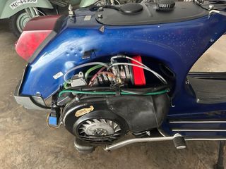 Esta Vespa 200 disco presenta un llamativo color azul.esta echo el motor por completo ,rodamientos ,retenes,cigüeñal,pistón rectificado ,escape polini ,carburador del 24 ,laminas ,bomba de gasolina ,llantas tubulares,esta pintadl los cofanos ,guanteras ,nariz ,la vespa esta en rodaje ,no tiene itv - Diseño clásico de scooter. - Transmisión manual.
