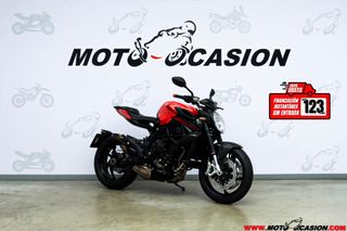 Mv Agusta 800 Dragster Rosso. Se vende con el escape de serie (1ª foto), si se quisiera el escape del resto de fotos consultar el precio por privado. Es único propietario, con factura de compra demostrable. Tiene el extra de los aireadores en carbono (+300€ + IVA, cada uno). Válida para el carnet A2. Libro sellado en concesionario oficial, revisiones anuales (todas en el mismo mes), no tuvo ningún accidente, tiene todas las piezas originales. Es de febrero del 2022 y actualmente tiene 6.000km. Se vende por no usar, se acepta comprobación mecánica.