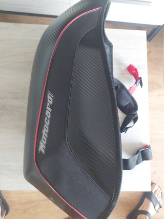Mochila para moto en perfecto estado. - Diseño deportivo. - Material resistente. - Acabados de carbono. - Color negro con detalles rojos.