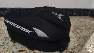 Maleta negra para moto de la marca MOTOCENTRIC. - Extensible e impermeable. - Se convierte en mochila para su fácil transporte. - Diseño aerodinámico. - Cierre con cremallera. - Correas de sujeción.