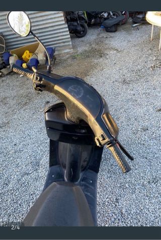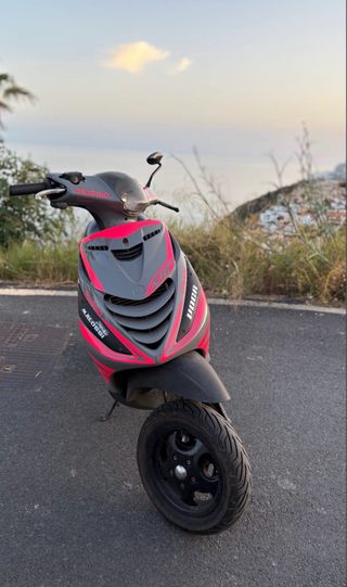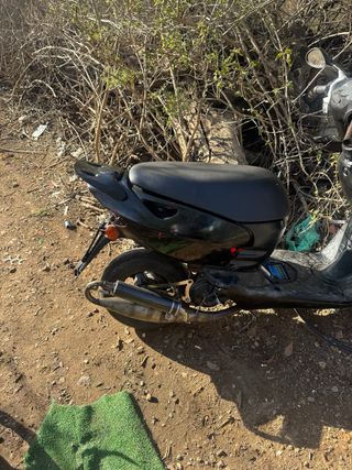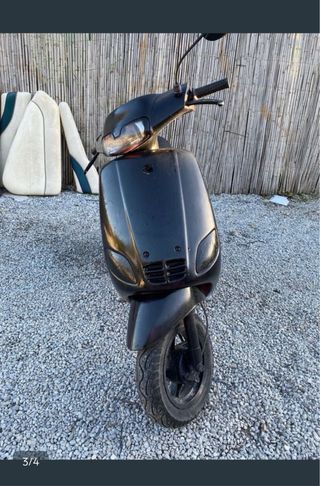 zip copa antigua de aire, a estado parada un tiempo ahora mismo no arranca pero porque lleva mucho parada pero la arregle entera por lo cual tiene que arrancar, esta ahora mismo a escape libre, esta de casa nunca preparada y le falta pintarla un poco antes estaba rosa y la pinte con spray pero con el tiempo se a ido cayendo. Scooter Piaggio Zip en color negro. Un modelo clásico y fiable para moverte por la ciudad. - Diseño deportivo. - Manillar con controles integrados. - Rueda delantera con suspensión.
