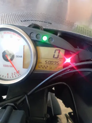 Kawasaki ZX6R del año 2008 en excelente estado o cambio por coche que me interesé - Kilometraje: 50095 km. - Indicador de marcha: 0 (Neutral). - Velocímetro en km/h. - Tacómetro (RPM) visible.