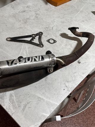 Tubo de escape Yasuni R. - Incluye soporte de montaje. - Incluye junta de admisión nueva - Fibras nuevas Tiene una pequeña aboyadura en la panza pero no afecta al funcionamiento