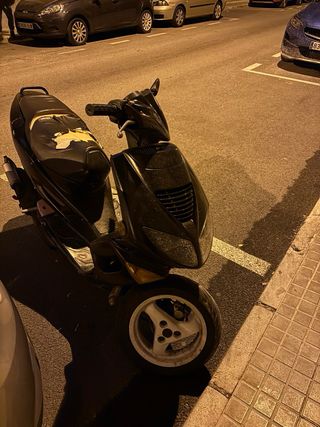 49cc -La moto va perfecta, arranca a botón cuando esta fría, si no a pata a la primera -El asiento lo tapizaría yo -Tengo escape tecnigas, lo cambie para pasar itv -Entera de casa CAMBIO POR 49cc marchas o 650€